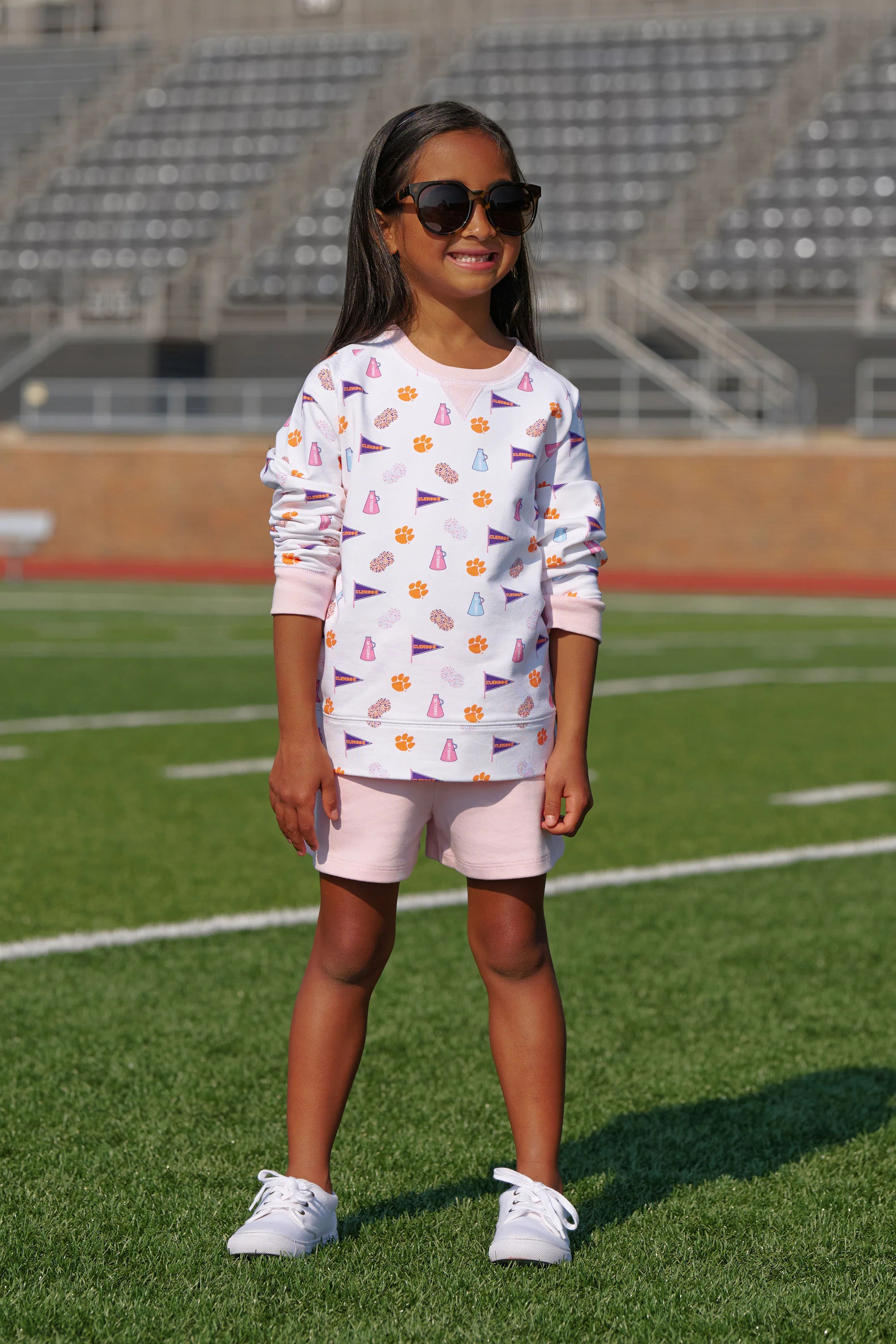 Go team, go! Featuring our exclusive Tiger Triumph print, she'll love showing her school spirit in the Clemson Cassidy Comfy Crewneck.