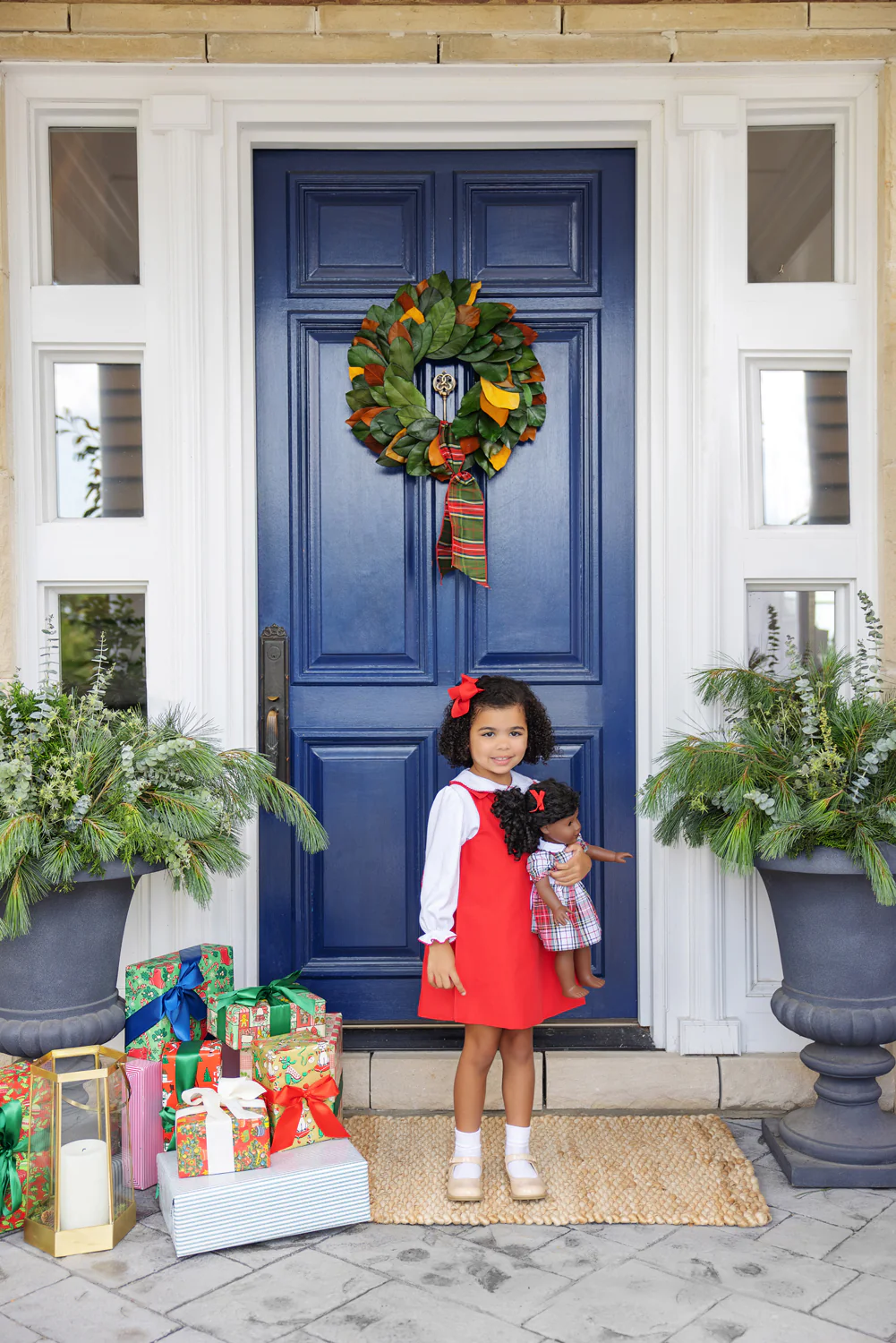 The Juliet Jumper in Richmond Red is a staple for every darling little girl's wardrobe. Inspired by the late 1960's, our signature Juliet Jumpers are the perfect combination of vintage + prep. She'll wear it to the first day of school, to her best friend's party, or to a fall festival, and her cheeks will be as red as her dress from all the "oohs" and "ahhs" she'll get!