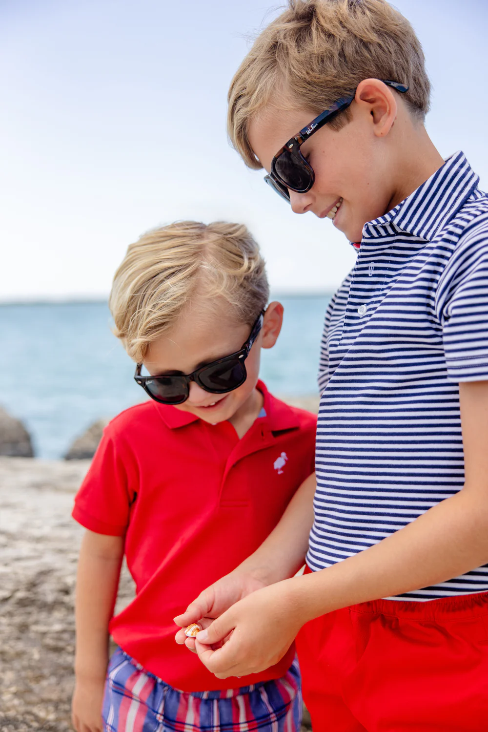 Elevate his everyday style with our Prim & Proper Polo in Nantucket Navy Stripe with Multicolor Stork. This polo is perfect for your dapper little gent and you'll be reaching for this one all season long. Regardless of the occasion, your little man will look as sharp as can be when he's wearing this polo.