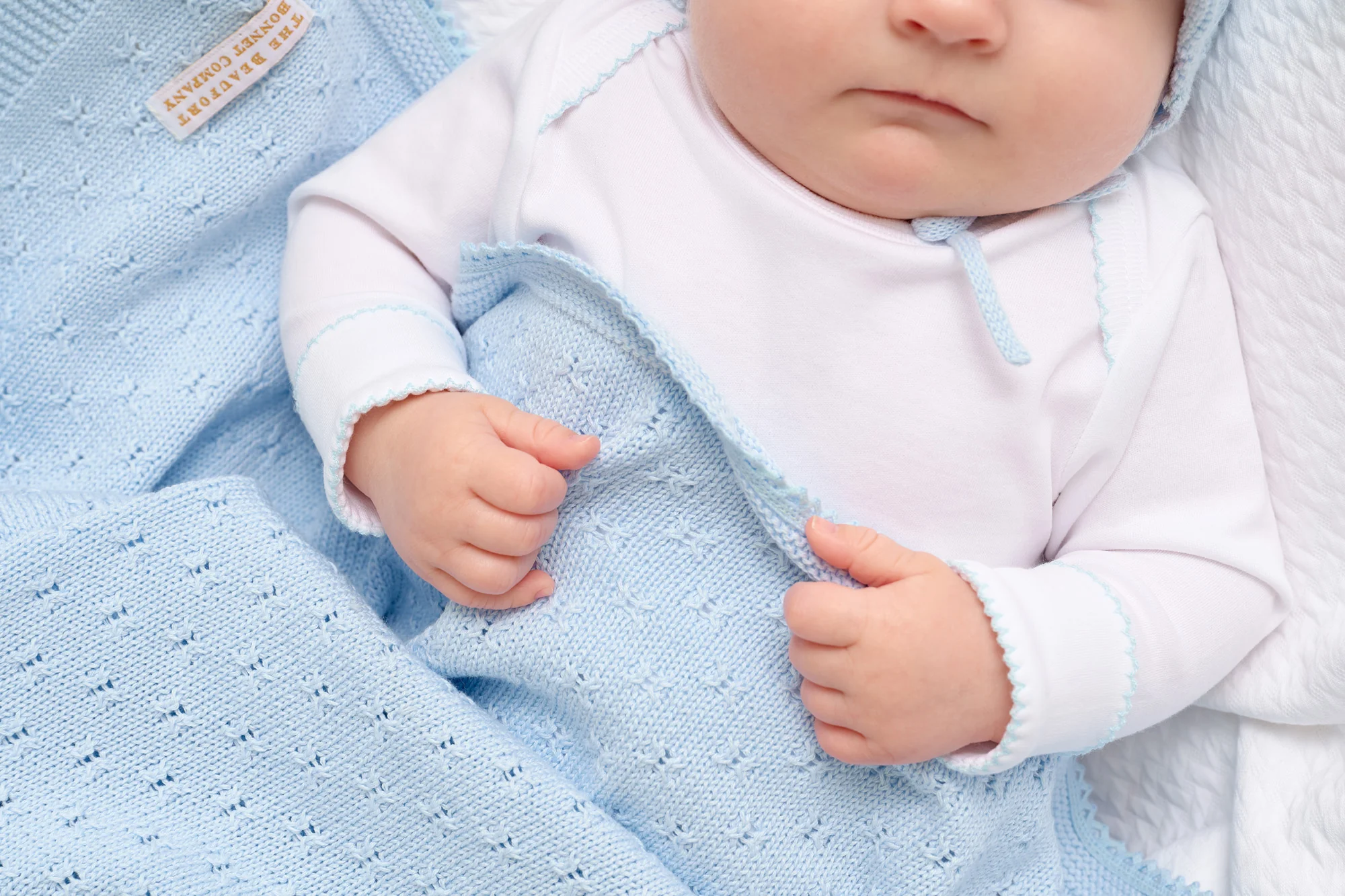 Welcome your precious new arrival with our Ramsey Receiving Set in Buckhead Blue, featuring a coordinating bonnet and swaddle blanket beautifully tied with a bow. This heirloom-quality gift set is perfect for hospital photos, coming-home outfits or presenting to new parents at baby showers.